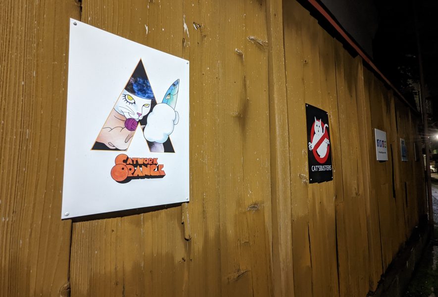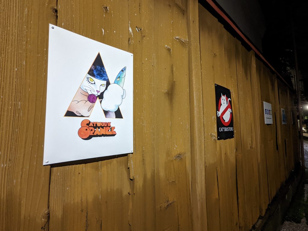塀沿いに猫のポスターがありました!全部で11枚あり、中には見覚えのある映画ポスターが、、、(笑)